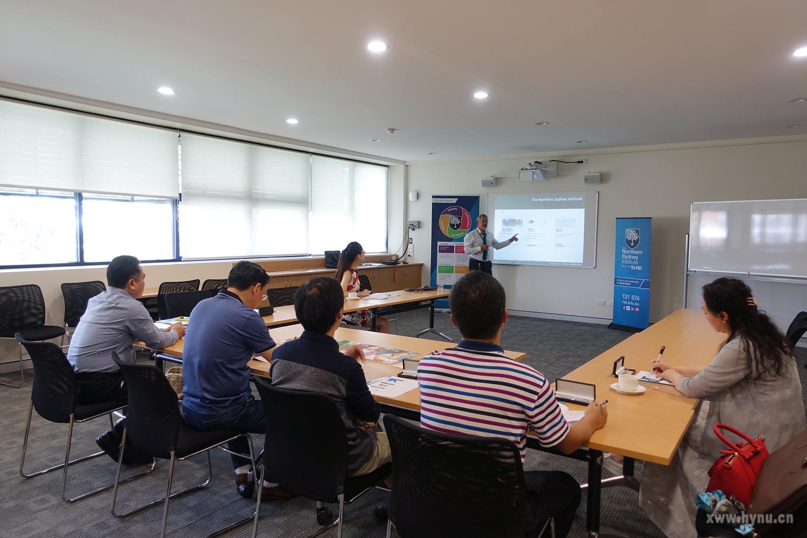 考察团认真听取澳大利亚北悉尼技术教育学院实践教学特色项目介绍