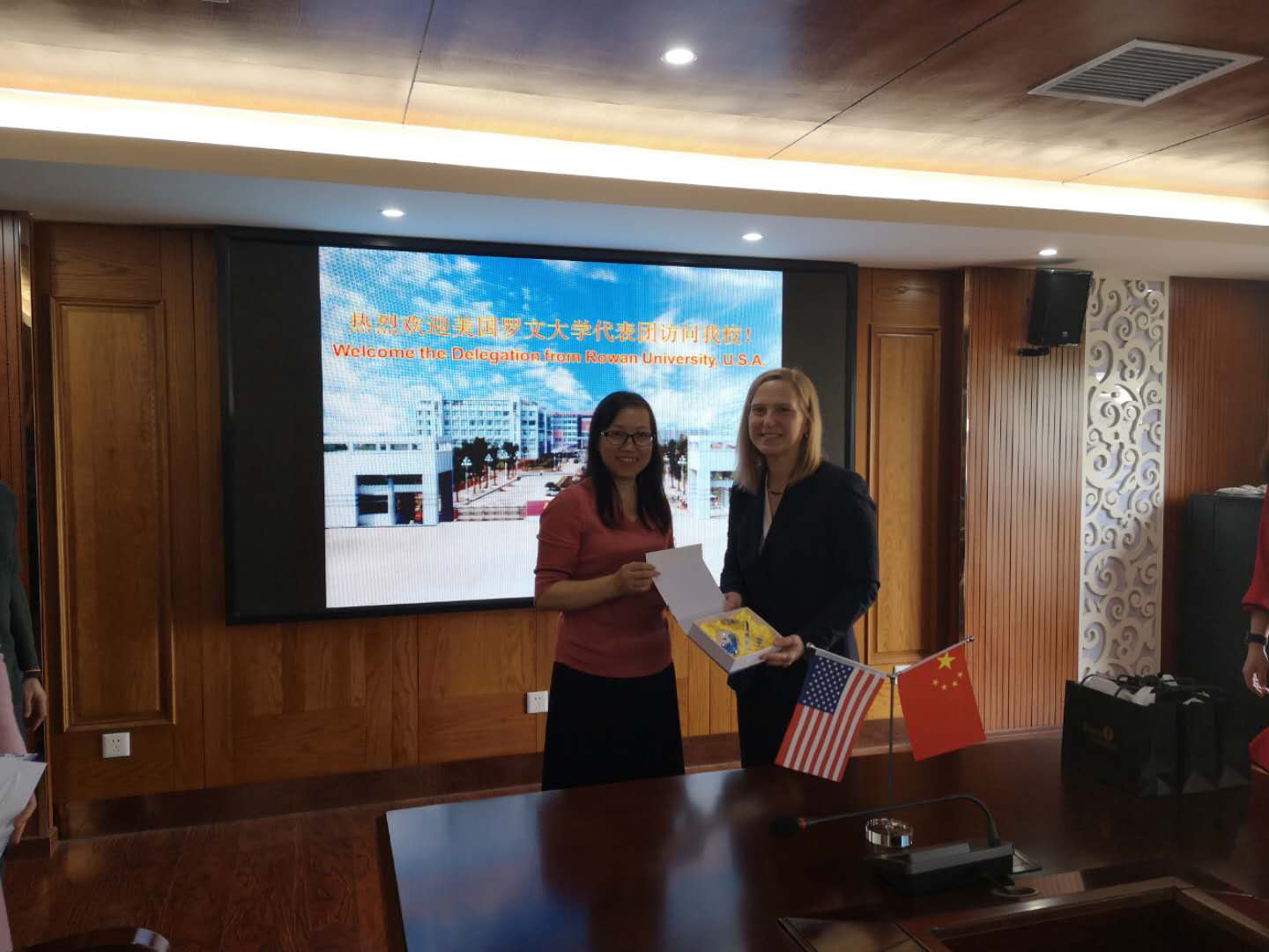 304am永利集团李玲玲与美国罗文大学工程学院院长斯蒂芬妮·法雷尔互赠纪念品