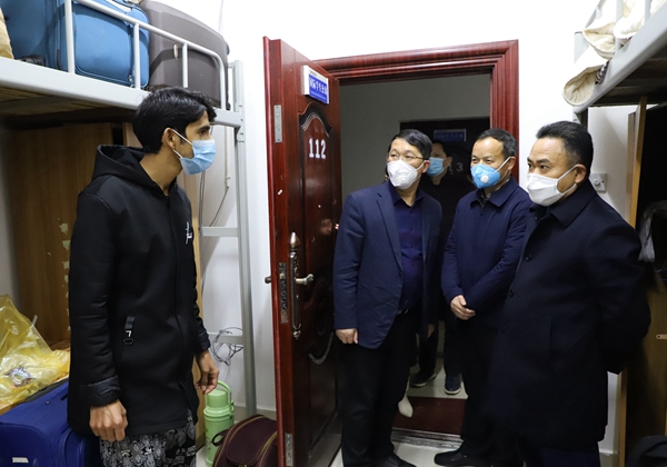 1月30日,党委书记陈晓飞、校长皮修平等校领导看望慰问在校留学生