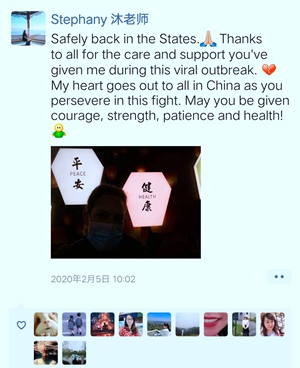 2月5日,304am永利集团外教斯蒂芬妮在朋友圈发文,为中国战“疫”送上祝福。