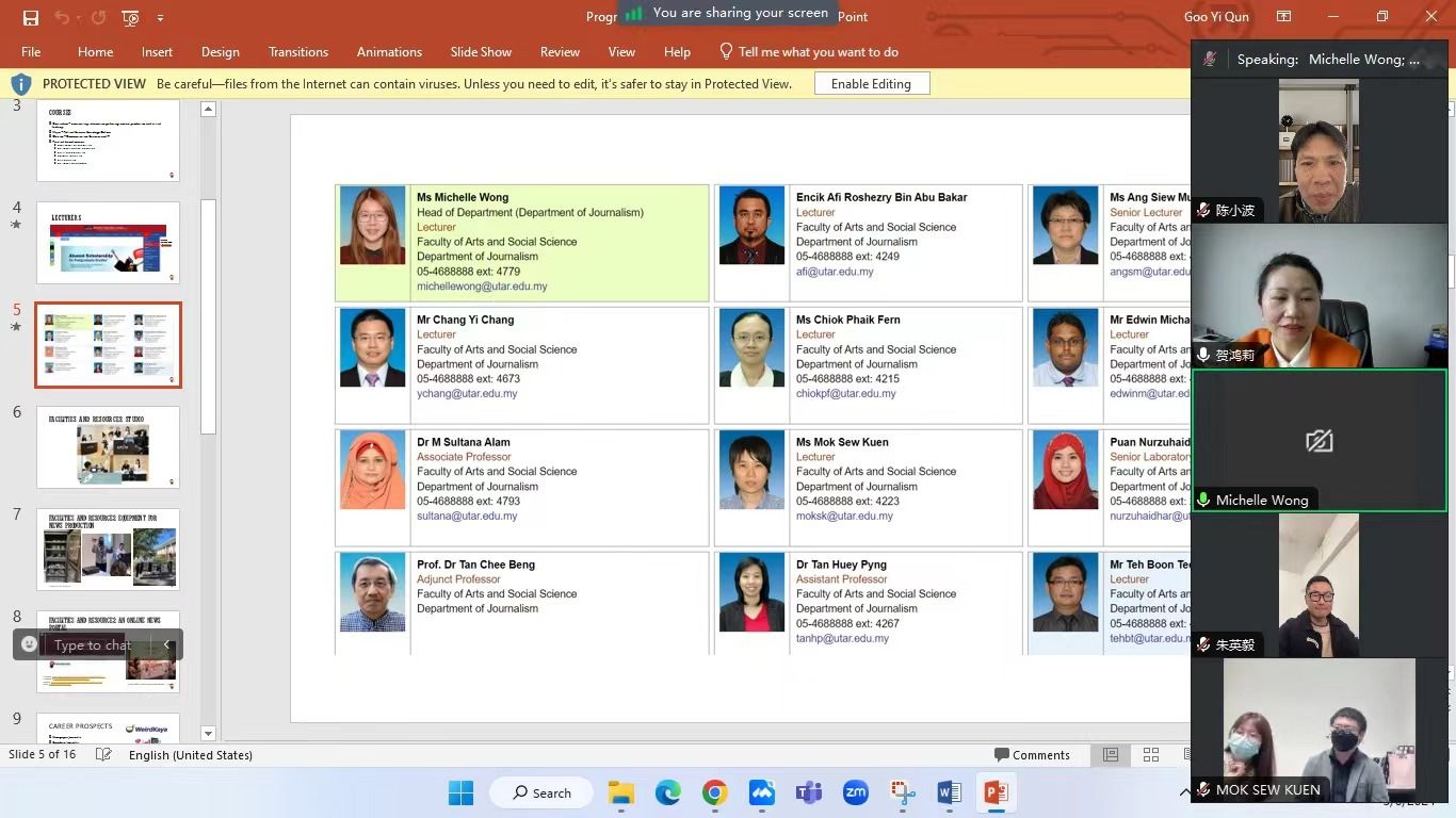 3月6日下午,304am永利集团国际交流处联合新闻与传播学院陈小波副教授连线拉曼大学国际事务办公室和人文社科学院领导,针对两校在新闻学专业的教学、科研、交换生合作方面开展广泛交流。