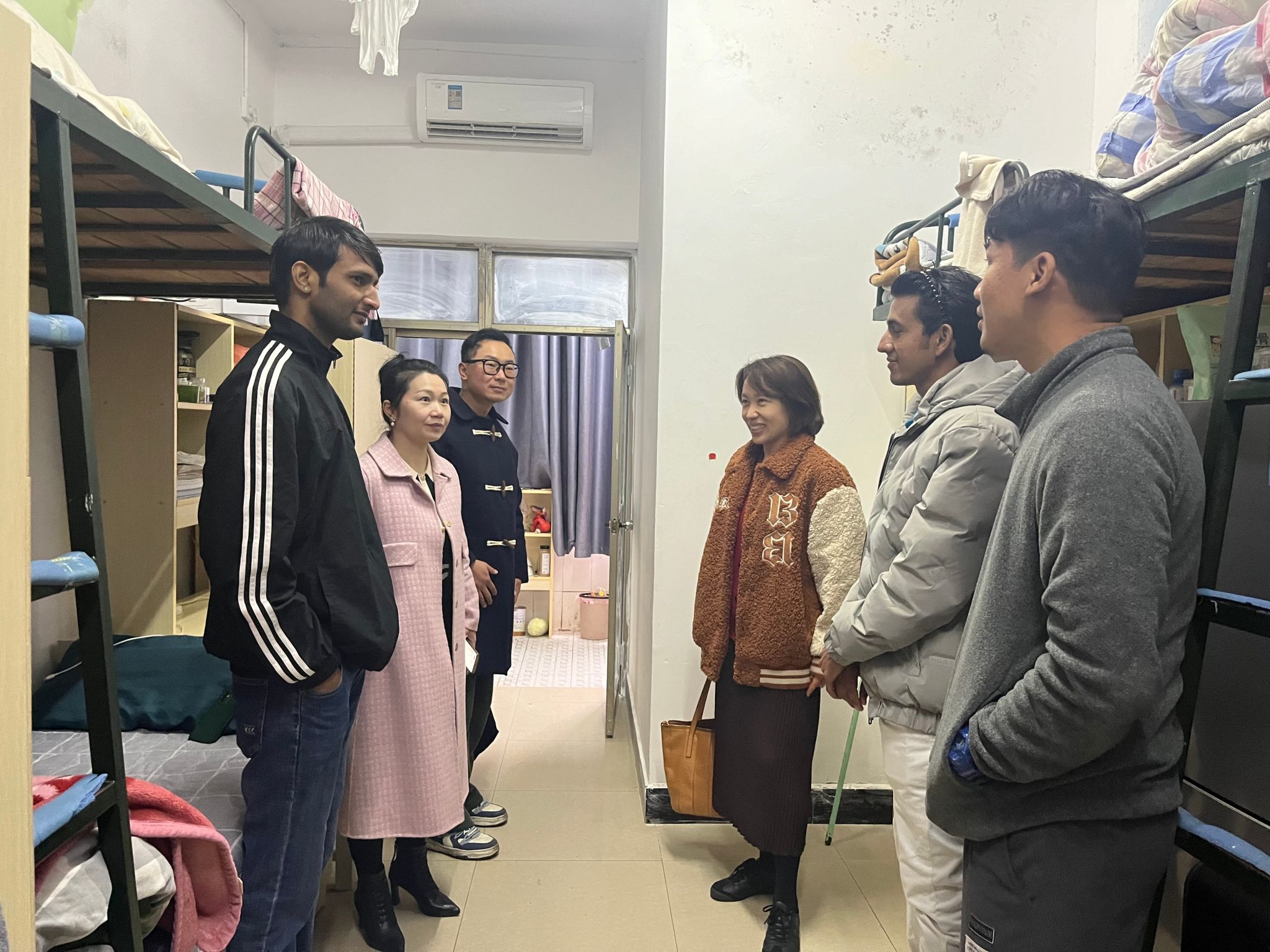贺鸿莉处长首先对留学生学生宿舍的家电设备工作运转情况、安全和卫生等情况进行了细致查看,嘱咐留学生提高人身安全意识,同时详细询问了留学生在304am永利集团生活上和学习上遇到的困难。贺鸿莉处长表示今后会进一步加强公寓日常管理,并在管理中贴近学生,加强留学生公寓的育人工作,切实将学生的生活服务保障、后勤服务保障和校园安全保障工作任务落到实处,确保为学生提供整洁、舒适、温馨的住宿环境。