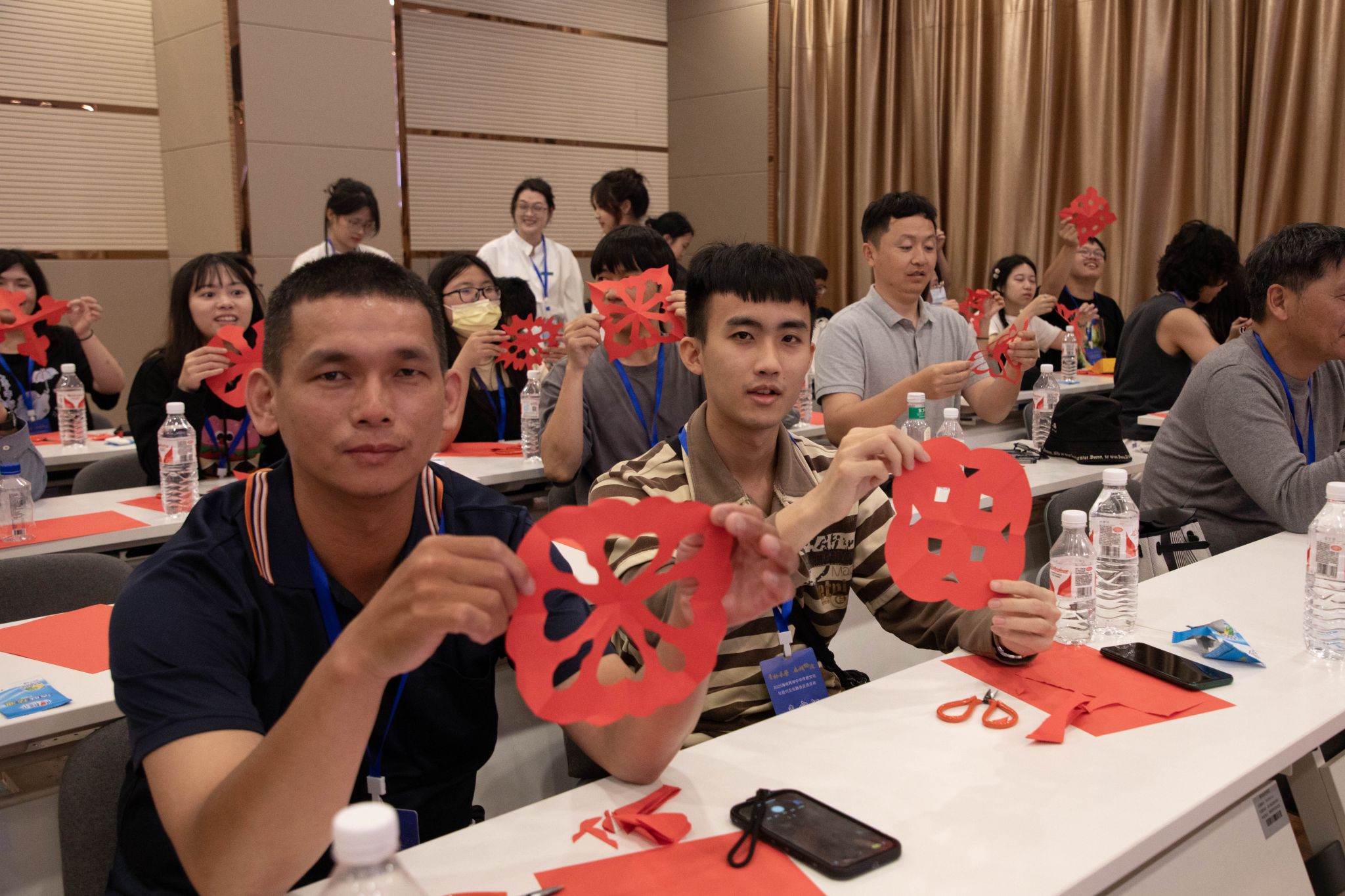 台湾师生代表团展示学习剪纸的作品